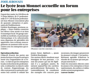 En cette rentrée scolaire, le lycée professionnel Jean Monnet voit l’arrivée d’une nouvelle direction. « Nouvelle direction, nouvelles ambitions, nouvelles dynamiques au lycée professionnel Jean-Monnet, pour